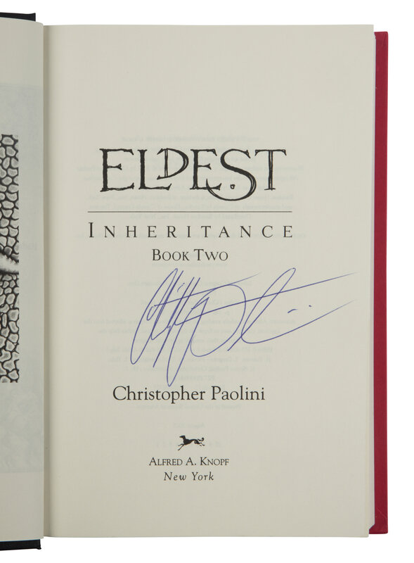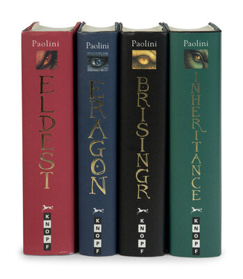 PAOLINI, Christopher (b. 1983). [The Inheritance Cycle]. Eragon. 2003. -- Eldest. 2005. -- Brisingr. 2008. -- Inheritance. 2011. All published in New York by Alfred A. Knopf.