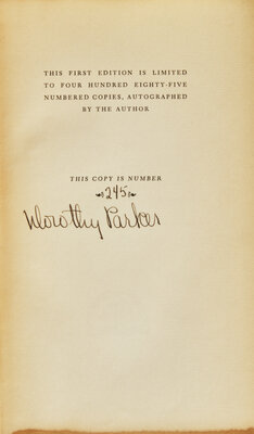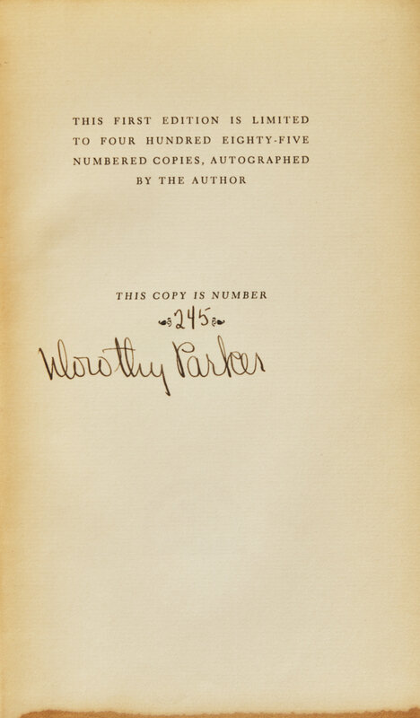PARKER, Dorothy (1893-1967). Not So Deep as a Well. New York: The Viking Press, 1936.