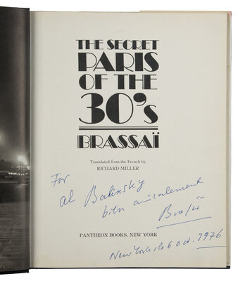 3) BRASSAI. The Secret Paris of the 30's. New York: Pantheon Books, 1976. FIRST AMERICAN EDITION. INSCRIBED BY BRASSAI.
