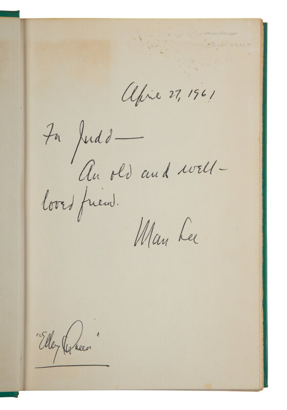 3) The XYZ Murder. Philadelphia: The XYZ Murders, 1960. INSCRIBED BY MANFRED LEE ("ELLERY QUEEN"), TO MYSTERY DETECTIVE AUTHOR JUDSON PHILIPS ("HUGH PENTECOST").