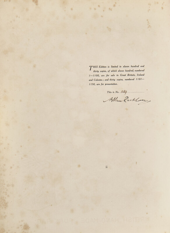 LIMITED EDITION, number 772 of 1,100 copies, SIGNED BY RACKHAM, from a total edition of 1,130. Riall, pp.115; Latimore & Haskell, pp.40-41