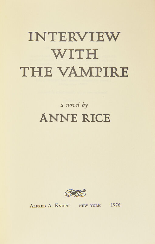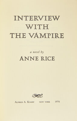 RICE, Anne (1941-2021). Interview with the Vampire. New York: Alfred A. Knopf, 1976.