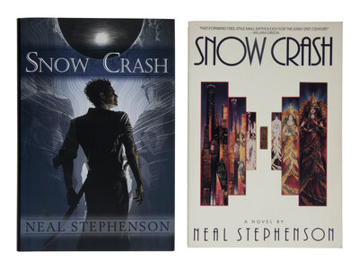 [With:] STEPHENSON. Snow Crash. New York: Bantam Books, 1992. Original pictorial wrappers. FIRST EDITION, PAPERBACK ISSUE, published simultaneously as the hard cover issue.