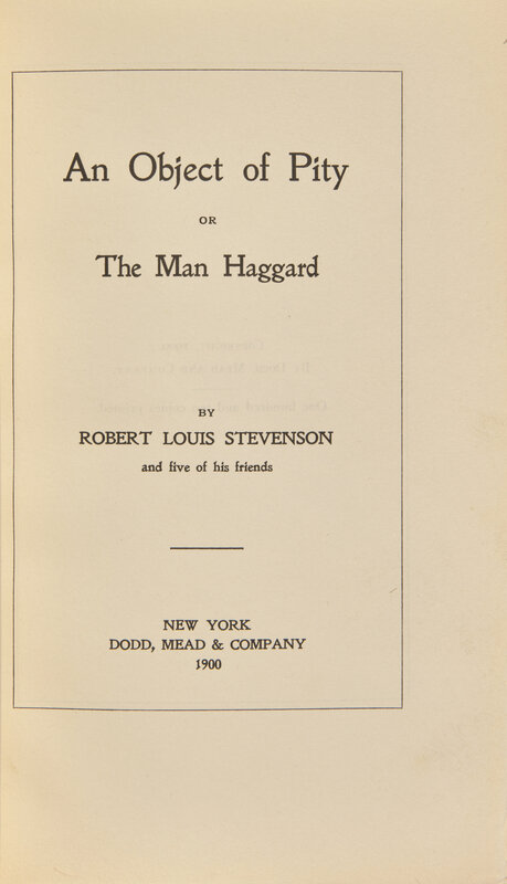 STEVENSON, Robert Louis (1850-1894). An Object of Pity or The Man Haggard. New York: Dodd, Mead & Company, 1900.