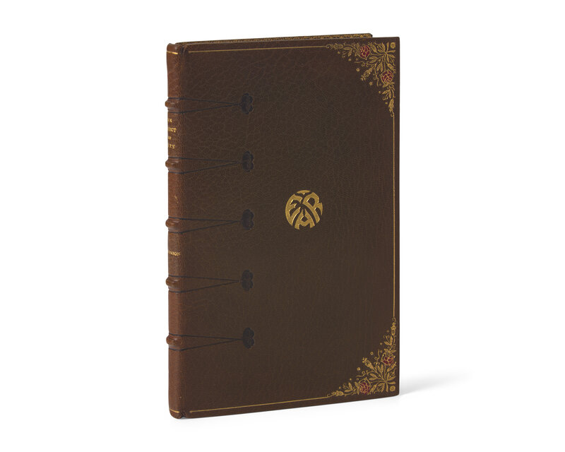 8vo. (Scattered light foxing to text.) Full olive green levant with floral motifs, stamped in blind, red, and gilt, monogrammed initials "EHR" on front cover, top edge gilt, other edges untrimmed; moiré silk doublure and endleaves, front doublure lifting; stamp-signed by Sickles.