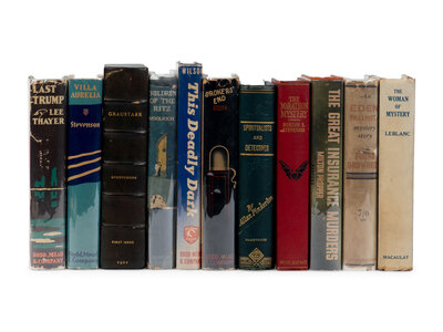 And others. Together, 400 works in 402 volumes. All 8vo, all published between ca 1880s-1960s, all in original cloth, most in dust jackets, MOST FIRST EDITIONS, SEVERAL INSCRIBED OR SIGNED, a couple from the library of Vincent Starrett and Adrian H. Goldstone. Condition generally very good.