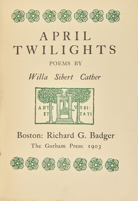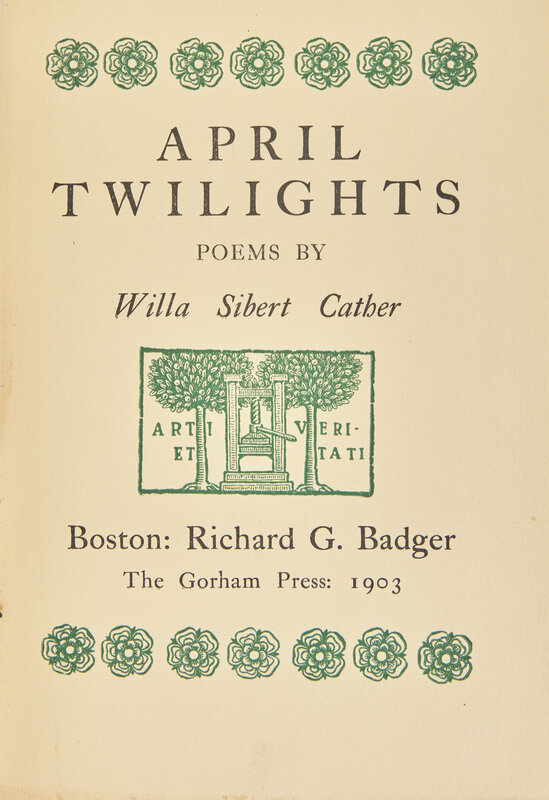CATHER, Willa Sibert (1873-1947). April Twilights. Boston: Richard G. Badger/The Gorham Press, 1903.