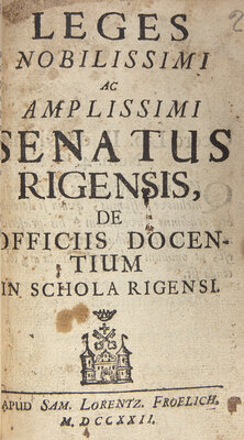 [Bound with:] 2 other works in German and Latin, printed in Riga by Samuel Lorentz Froelich, ca 1722.