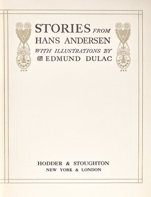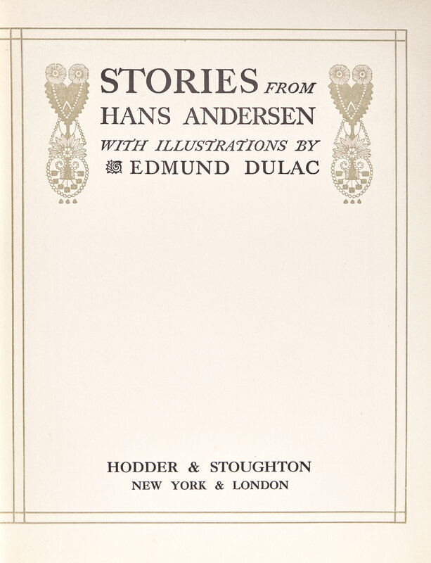 [CHILDREN'S BOOKS]. [DULAC, Edmund (1882-1953), illustrator]. -- ANDERSEN, Hans Christian (1805-1875). Stories from Hans Andersen. New York & London: Hodder & Stoughton, (1911).