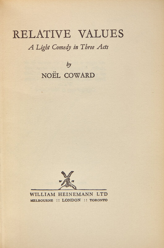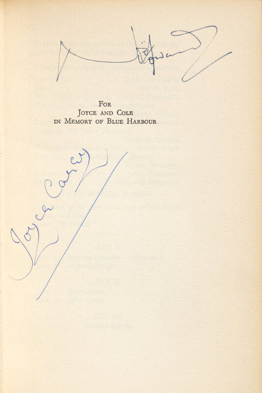 London, etc.: William Heinemann Ltd, (1952). 12mo. Original blue cloth stamped in gilt; dust jacket (spine faded). FIRST EDITION, PRESENTATION DEDICATION COPY, signed by Coward and actress Joyce Carey (dedicatee) on dedication page. Ownership signature of Coward's secretary, biographer, and dedicatee, Cole Lesley on front free-endpaper.
