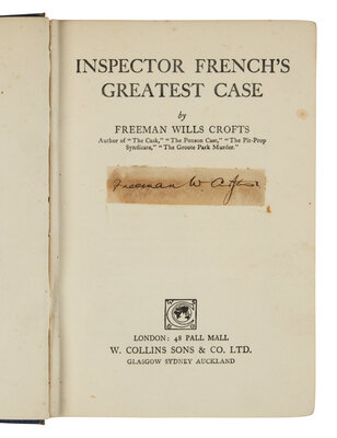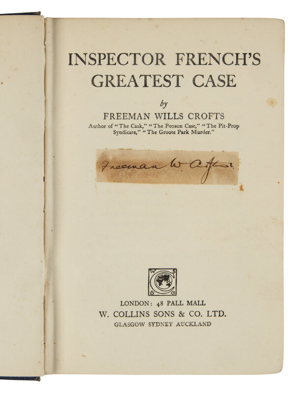 1) Inspector French's Greatest Case. London: W. Collins Sons & Co., 1924. With a clipped signature by Crofts on title-page.