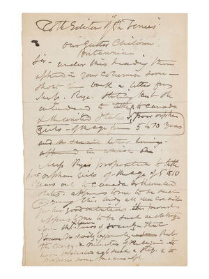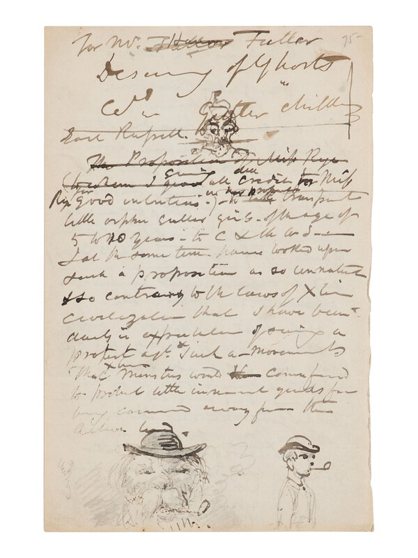 [With:] CRUIKSHANK, George. Autograph letter, to Editor of the London Times and to Justice Fuller, n.p., n.d. 2pp. on a single sheet, 8vo. WITH 3 ORIGINAL DRAWINGS BY CRUIKSHANK. Both letters relate to the sending of orphan girls to Canada and the U.S.