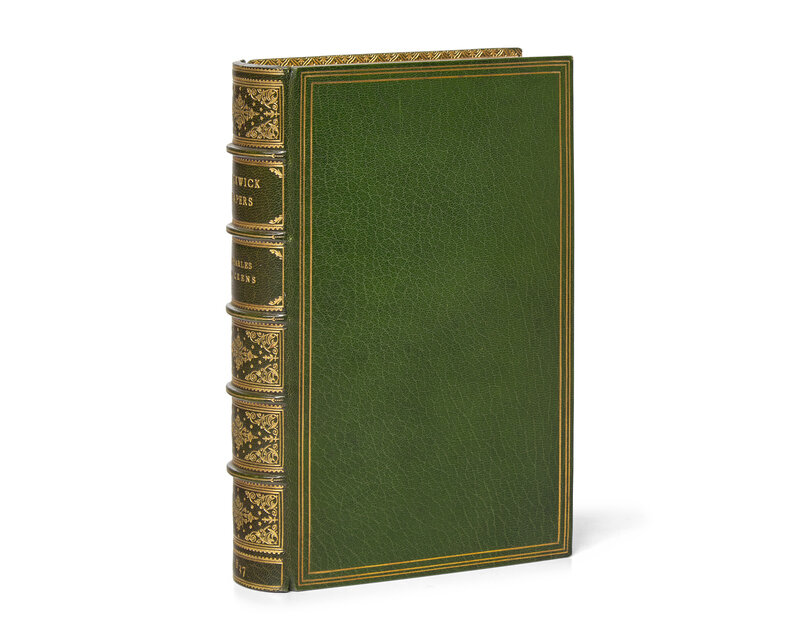 8vo. Engraved frontispiece, engraved vignette title-page, and 41 engraved plates by Robert Seymour, Robert William Buss (the early "suppressed" plates), and Hablot Knight Browne ("Phiz"). (Wear along fore-edge of frontispiece and engraved title; light toning and foxing to plates; scattered spotting to text.) Full green levant, decorated in gilt, top edge gilt, other edges trimmed, gilt dentelles, stamp-signed by Morrell; slipcase. Provenance: Kenyon Starling (bookplate); William E. Self (bookplate).