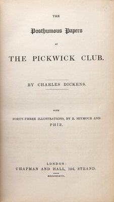 DICKENS, Charles (1812-1870). The Posthumous Papers of the Pickwick Club. London: Chapman and Hall, 1837.