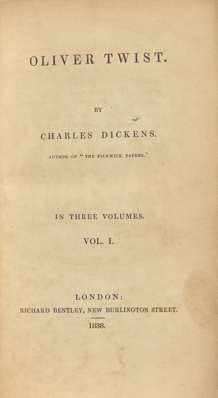 DICKENS, Charles (1812-1870). Oliver Twist. London: Richard Bentley, 1838.