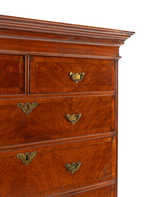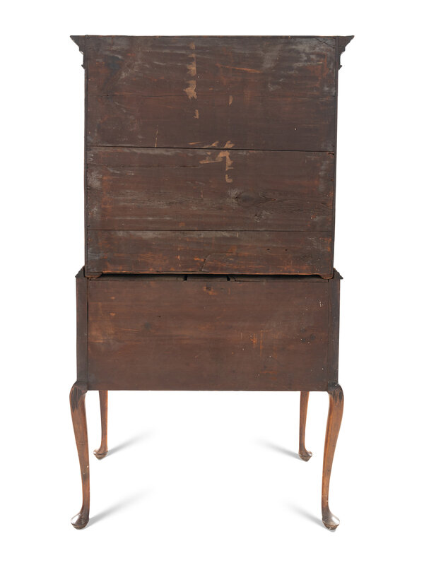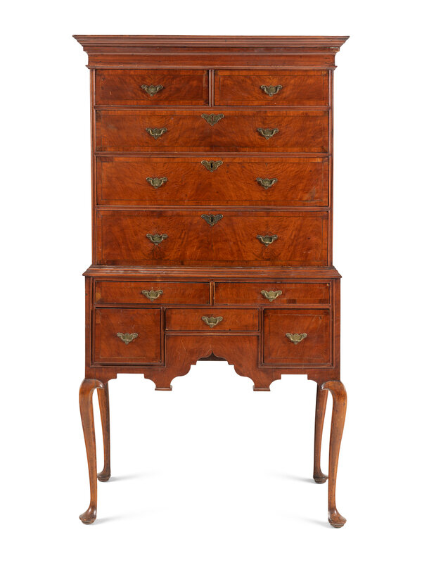 A Queen Anne Figured and Veneered Walnut Flat-Top High Chest Of Drawers