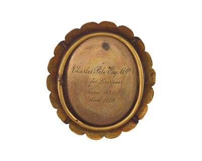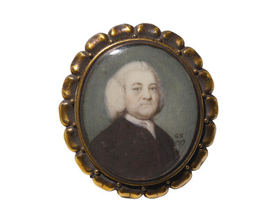 initialed and dated, "GS/ 1757," l.r., watercolor, housed in a gilt metal case, verso engraved, "Charles Pole Esq., M.P./ for Liverpool/ born 1695/ died 1779."