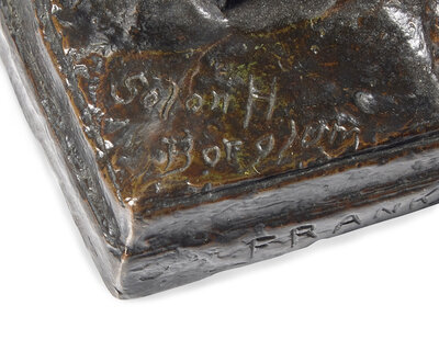 signed to base, "Solon H. Borglum," inscribed to front of base, "Franklin," impressed to rear corner of base with foundry and copyright marks, "R.A.F." and "C 1977/ H. Borglum/ M. Davies," bearing red-painted accession number to rear base, "87.20."