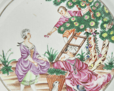 A Chinese Export Porcelain Plate Depicting "The Cherry Pickers"