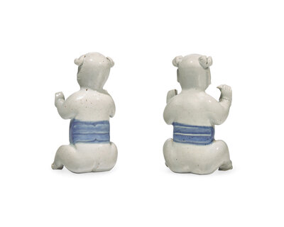 A Pair Of Chinese Porcelain Laughing Boys In Blue And White
