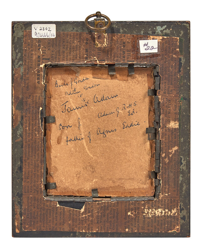 backing paper inscribed in ink, "Duke of Gordon > Adam Gordon > James Adam/ son of Adam J. R.H.S. Ed./ father of Agnes Eadie," watercolor, housed in black frame with brass mounts and gilt metal mat.