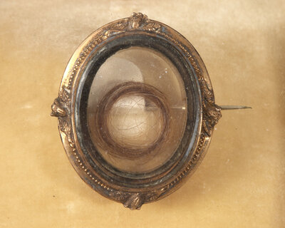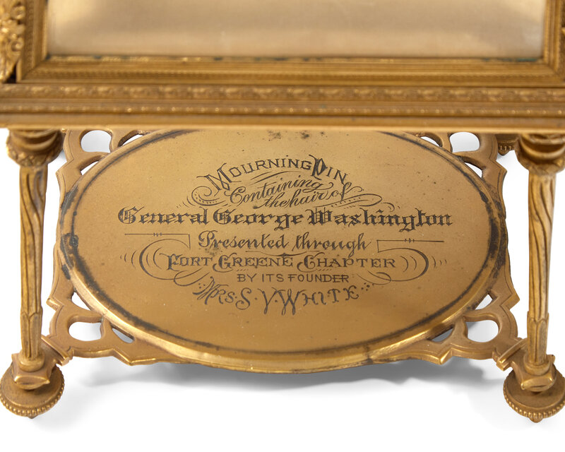 A Mourning Brooch With Hair Of George Washington Mounted In A Gilt Bronze And Glass Vitrine