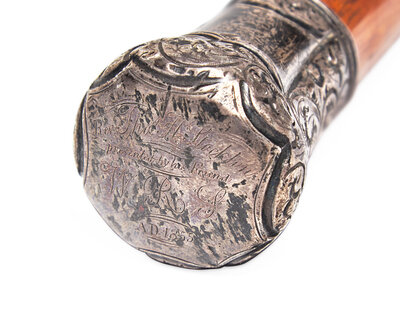A Silver-Mounted Oak Walking Stick Made Of The Original Timbers From Independence Hall, Presented To Rev. Thomas H. Stockton (1808-1868)
