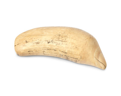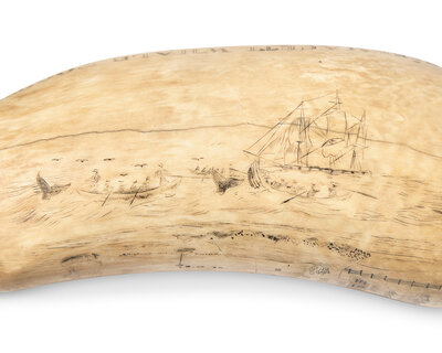 A Large Scrimshaw Whale Tooth Worked On The Whaler Atlantic