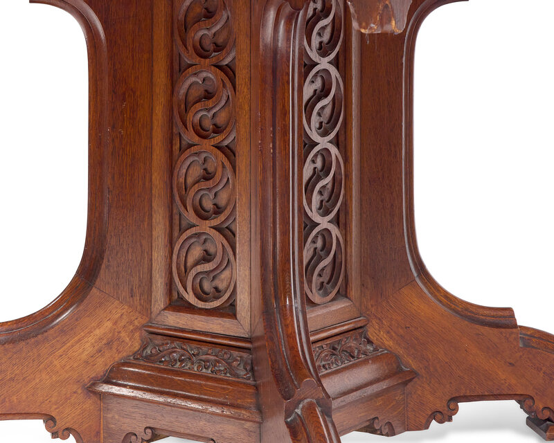 A Gothic Revival Carved Oak Center Table With Inset Leather Top
