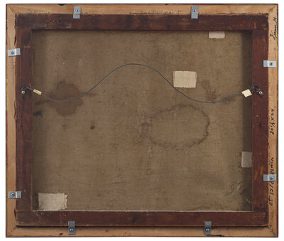 19 1/2 x 23 1/4 inches (sight), 23 x 26 1/4 inches (frame).