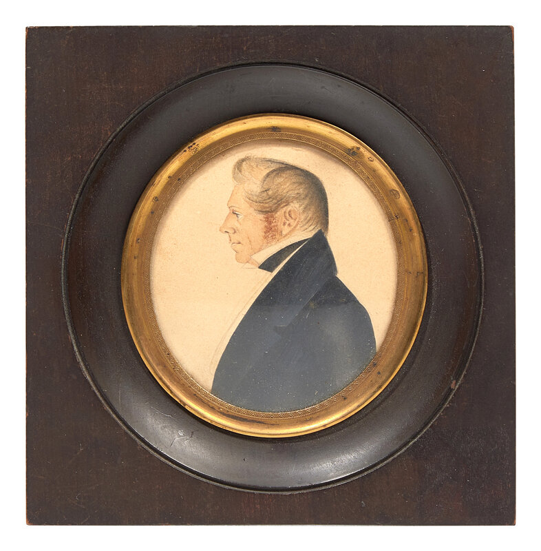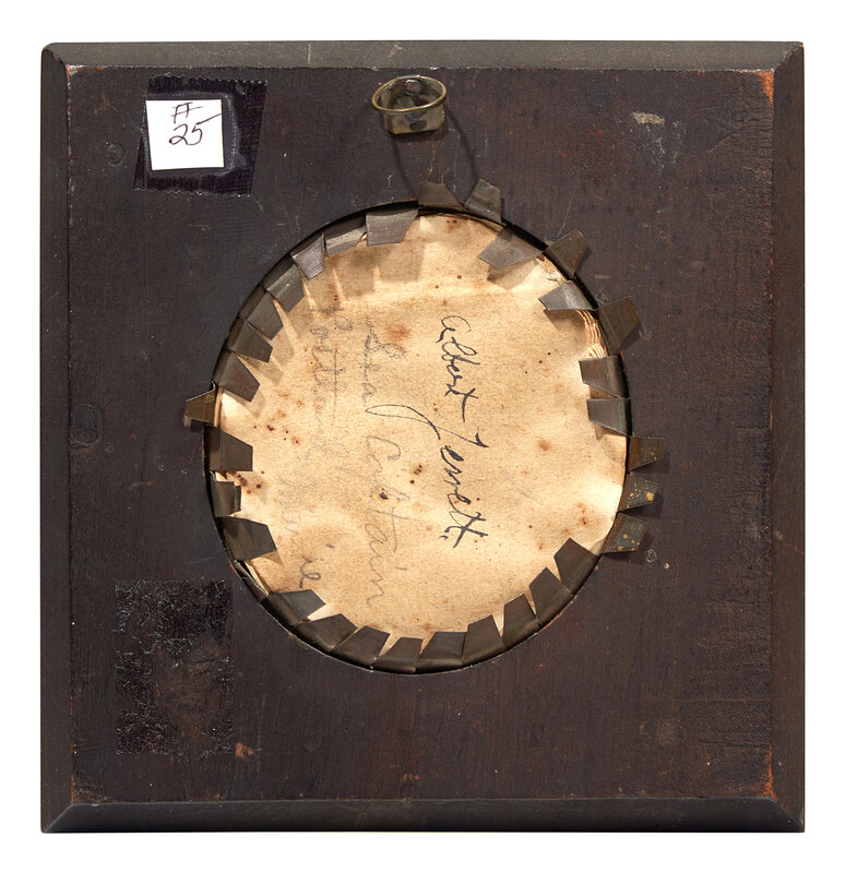 backing paper inscribed in ink and pencil, "Albert Jewett/ Sea Captain/ Portland Maine," watercolor on paper, housed in wood frame with brass mount.