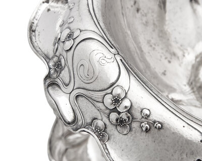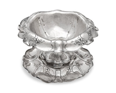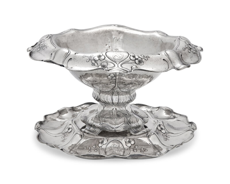 An Art Nouveau Martelé Silver Centerpiece Bowl And Plateau