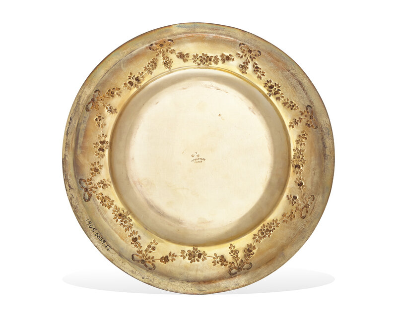 A Set Of Twenty-Nine French Louis XVI Style Silver-Gilt Repousse Dinner Plates