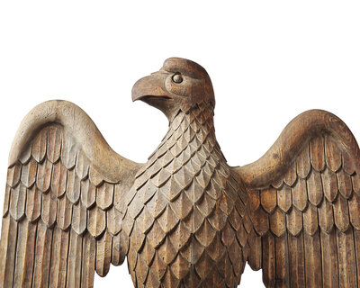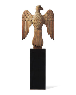 Height 43 x width 31 1/2 x depth 11 inches (eagle only), Height 39 1/4 x width 15 x depth 15 inches (pedestal only).