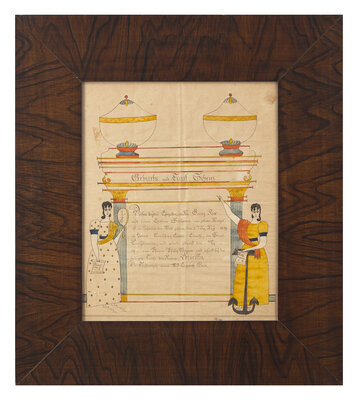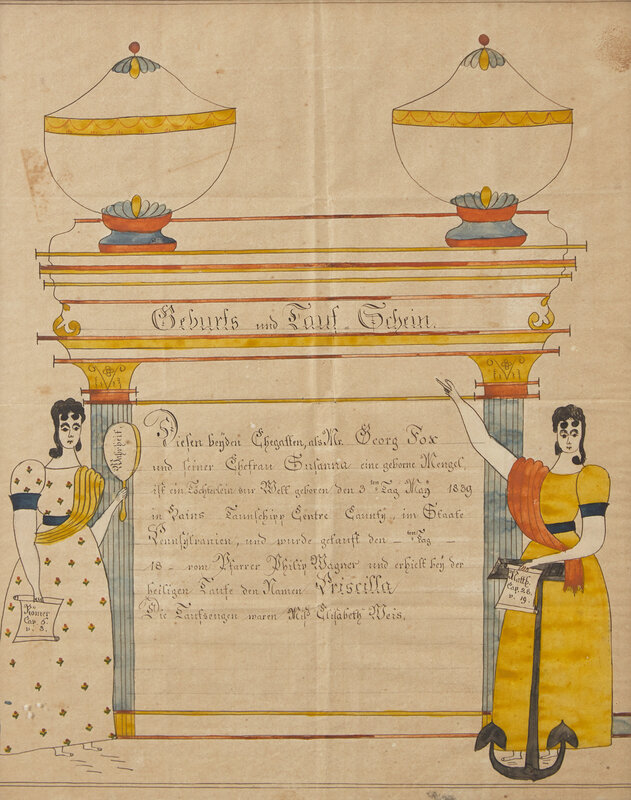 Reverend Henry Young (1792-1861) A Fraktur: Birth And Baptism Record For Priscilla Fox