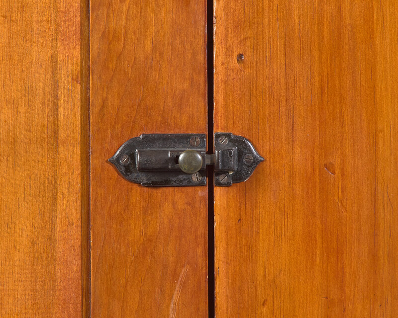 each drawer with numbered chalk mark to the underside of the bottom board, with red-painted accession number, "63-160-8," at top of the proper left side panel.
