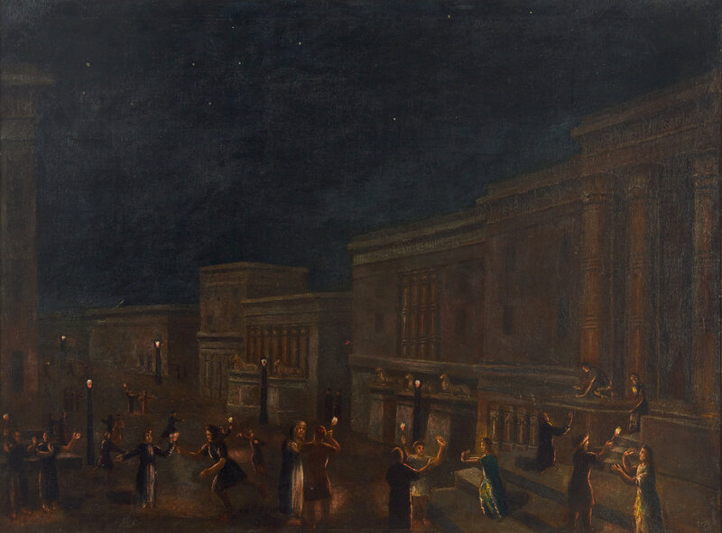 bears paper labels on verso, American Folk Art Gallery, New York and Museum of Fine Arts, Springfield Mass, oil on canvas, framed.
