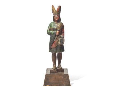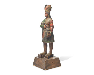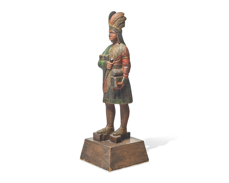 A Carved And Painted Tobacconist Figure Of A Native American Chief