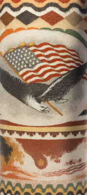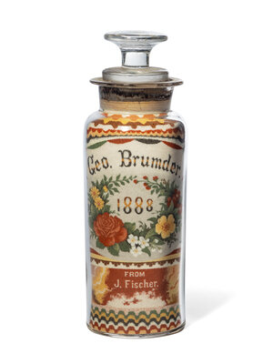 the front depicting an eagle and flag, the reverse depicting a floral wreath and bearing the inscription Geo. Brumder / 1888 / From J. Fischer, with an affixed Andrew Clemens paper label to the underside.