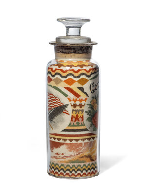 A Sand Art Bottle, Andrew Clemens (1857-1894), McGregor, Iowa, Dated 1888