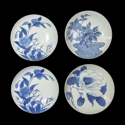 Four Japanese Nabeshima Style Porcelain 'Flowers' Plates, Edo Period
