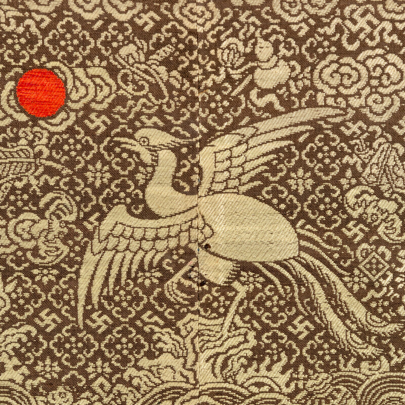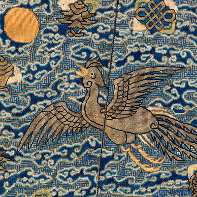 The first a pair of paradise flycatcher badges, Xianfeng-Tongzhi period, each worked with a bird standing on top of a rock formation emerging from waves; the second a pair of silver pheasant badges, Guangxu period (1875-1908), each worked with a bird amidst clouds and auspicious emblems.