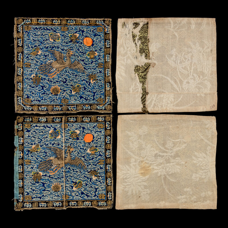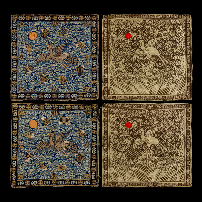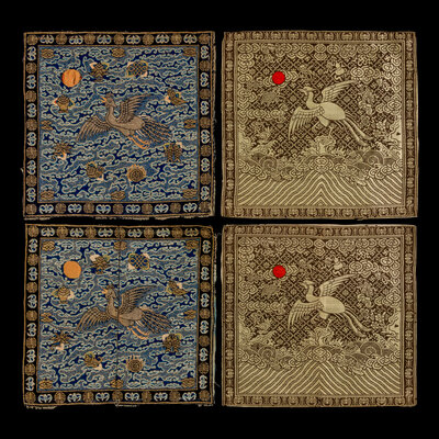 Two Pairs of Chinese Silk Brocade Civil Official's Rank Badges, 19th Century