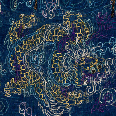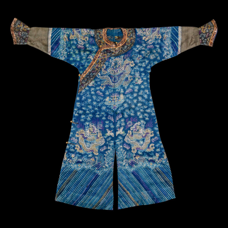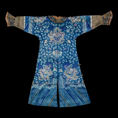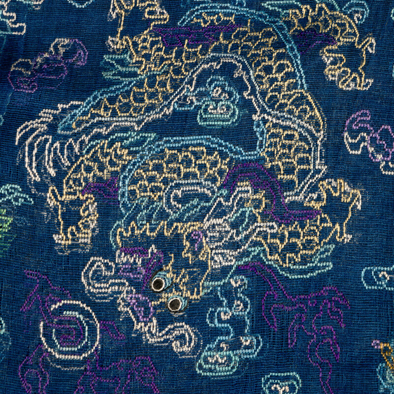 清晚期 藍地納紗繡雲龍紋夏吉服
