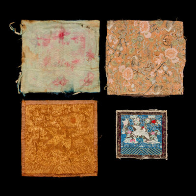 Three Chinese and One Vietnamese Embroidered Silk Rank Badges, 19th Century
