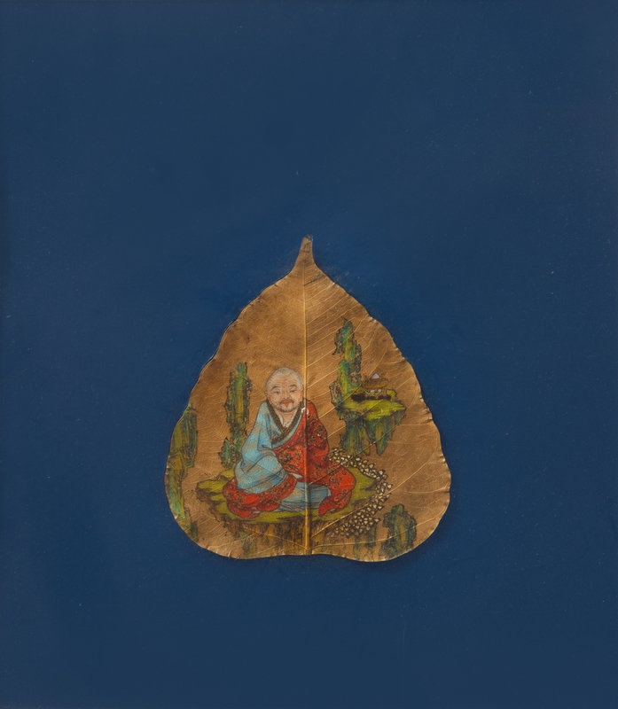 ink and color on bodhi leaf