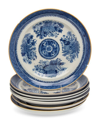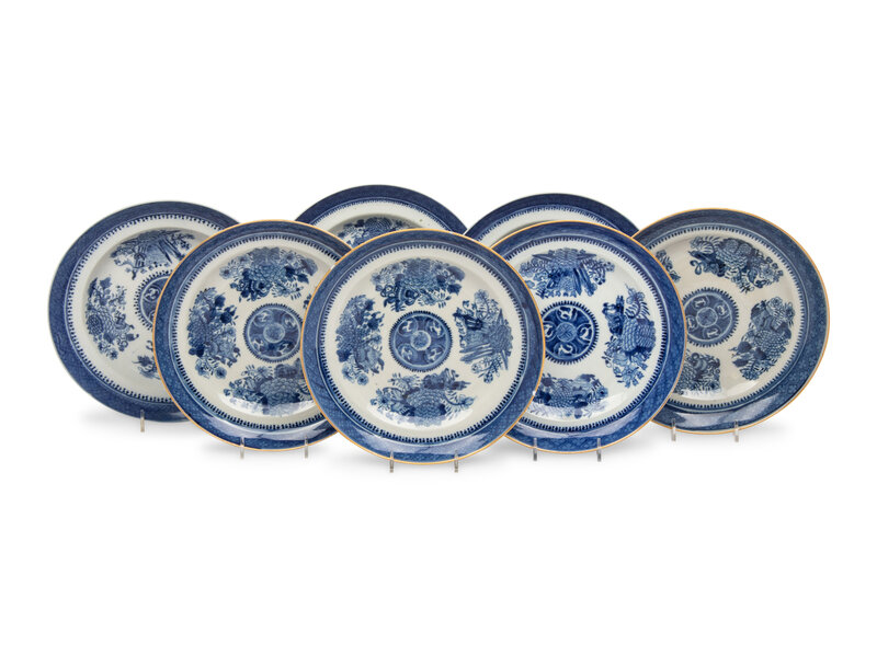 Seven Chinese Export Blue and White Porcelain “Fitzhugh” Dishes