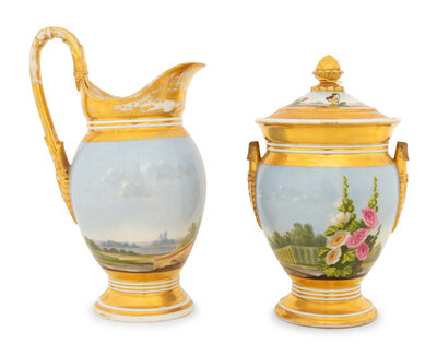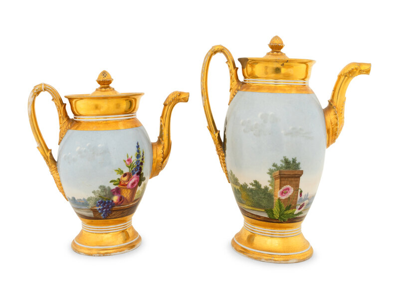 A Paris Porcelain Hand-Painted and Parcel-Gilt Porcelain Tea and Coffee Service