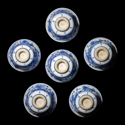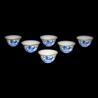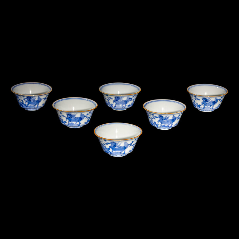 A Set of Six Blue and White 'Qilin' Porcelain Cups