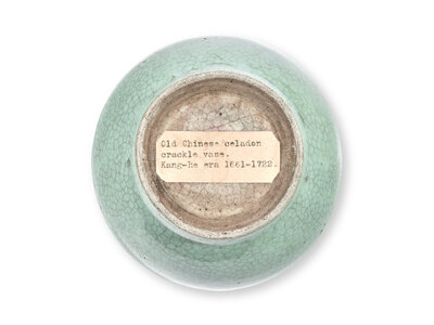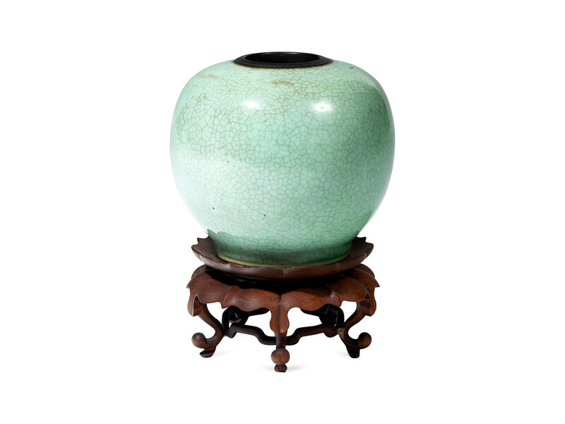 A Small Chinese Pale Green Crackled Glaze Ovoid Jar, Kangxi Period